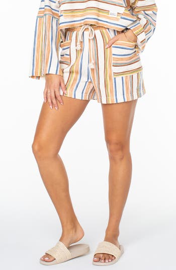 A breezy cotton blend furthers the sunny vibe of these striped shorts.