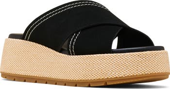 Add a breath of fresh air to your ensemble with this crossover-strap slide sandal set on a just-right platform sole.