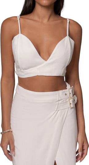 This bustier-inspired wrap top keeps things cool with a cotton-linen blend and fastens effortlessly with a practical buckle at the back.