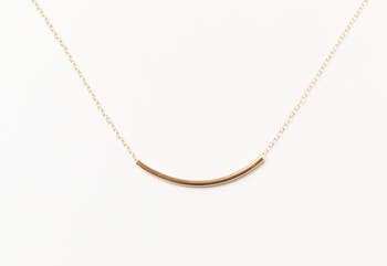 The Sunset Bar is all about quiet shape and soft movement. A gently curved 1.5" bar floats freely along a delicate chain, shifting with you and catching light as it goes. Wear it solo or layer it into a stack — it's the piece that pulls everything together without taking over. Handcrafted in 14k gold fill. 1.5" curved bar. Adjustable chain. Lobster clasp.