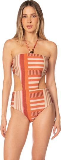 The comeback of a best seller silhouette. The Rocy one piece is every girls favorite. Its more like a trikni with sutil cuts in the waist. It has a straight neckline with removable strap. Moderate converage in the back and removable soft pads. Includes PowerMesh technology for tummy control.
