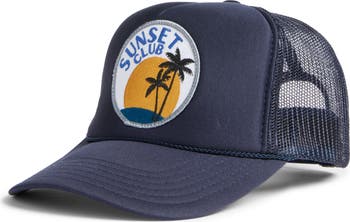 Your beachgoing attire is incomplete without this classic trucker hat boasting a fun patch and breathable mesh paneling at the back and sides for cooling comfort from sand-filled mornings to sunset-hour cocktails.