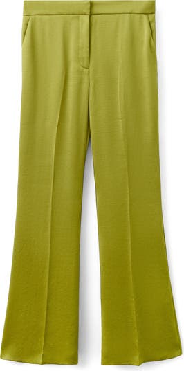 Add a verdant color pop with hammered satin pants cut in a graceful drape.