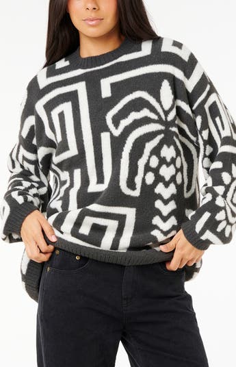 With bold lines that feel like wearable artwork, this relaxed sweater pairs a captivating motif with roomy dropped shoulders and clean ribbed edges.