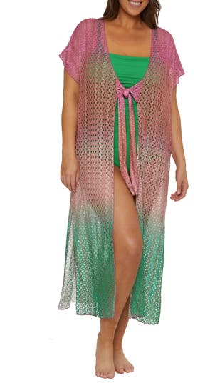 A shimmer-kissed ombré pattern brings sunset-inspired energy to this lacy cover-up robe that's perfect for your next beachside stroll.