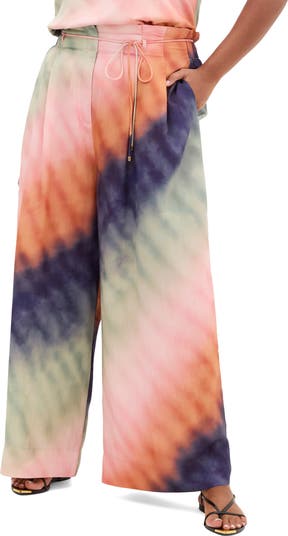 Ombré tones embolden the look of woven wide-leg pants topped by a stretchy waistband for a relaxed fit.