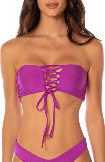 Wear this bikini top four different ways with a contrasting reverse and a lace-up detail that looks great in the front or back depending on your mood.