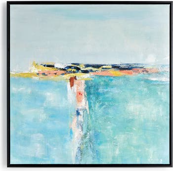 - A modern composition that hints at a sun-kissed island getaway, this largescale giclee on canvas is a serene composition in vibrant hues. The highlights are hand-embellished with touches of paint creating a rich texture and depth. The canvas is