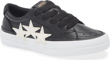 Mike Amiri draws inspiration from Californian skate culture with a low-top sneaker detailed with star-shaped perforations and patches that dip into the midsole.