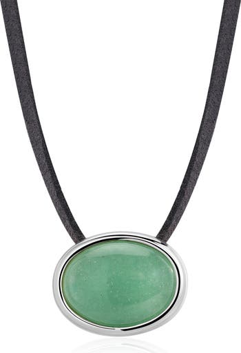 A bezel-set aventurine cabochon brings earthy color to this slender corded necklace secured by an adjustable sliding bead closure for the perfect fit.