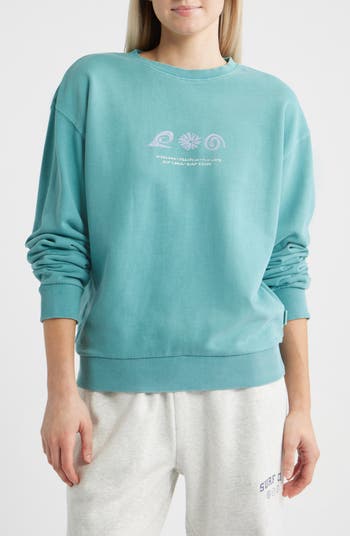 A vintage-inspired graphic marks the chest of a relaxed-fit sweatshirt cut from soft cotton.