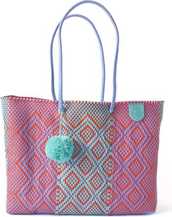 Spacious. Stylish. Sustainably Made. Meet our best-selling Woven Super Tote Bag — a customer favorite for beach days, weekend getaways, and everyday adventures. Handwoven in Mexico from 100% recycled plastic, this tote combines artisan craftsmanship with effortless practicality. Lightweight yet incredibly durable, it’s designed to carry everything you need—whether you’re packing towels and sunscreen for a seaside escape or essentials for a road trip. The Super Tote stands out for its flexible structure, allowing it to expand to fit more while retaining its elegant shape. Its open-top design makes it easy to load and unload, while the sturdy woven handles ensure comfort and strength for carrying heavier items. Each bag takes 20–40 hours to make, reflecting the artistry and dedication of our skilled artisans. Every piece is unique, with slight variations in color and size that add to its authenticity and charm. Perfect for boutiques, gift shops, and resort retailers, this tote offers high visual appeal and versatile functionality—making it one of Tin Marin’s top-performing styles in both retail and corporate orders. PRODUCT FEATURES: -Eco-Friendly Craftsmanship: Made from 100% recycled plastic, blending style with sustainability. -Durable & Flexible: Lightweight, water-resistant, and built to last through countless adventures. - Spacious Design: Fits beach towels, weekend essentials, groceries, or event gifts with ease. - Handmade Quality: Each bag is handwoven by artisans in Mexico, supporting over 200 sustainable jobs. - One-of-a-Kind: Subtle color and size variations make every piece unique. SIZE INFO: Dimensions: 17" L x 13" H x 7" D Handle Drop: 9" Weight: 1.2 lbs