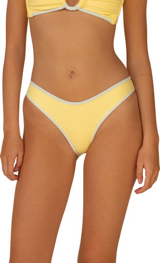 Contrast binding pops against the sunny hue on these high-leg bikini bottoms with moderate back coverage.