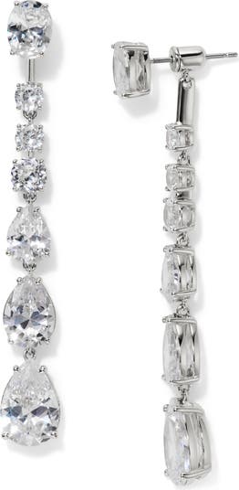 Graduated round- and pear-cut crystals bring mesmerizing sparkle to these elegant drop earrings plated in hand-polished 18-karat gold or rhodium.