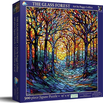 The Glass Forest 500 pc Jigsaw Puzzle by SunsOut- 500 Piece Jigsaw Puzzle - Completed Size: 19" x 19" - Puzzle Artist: Peggy Collins - SunsOut Puzzles are Proudly Made in the USA - Interlocking Pieces and Durable Construction: SunsOut jigsaw puzzles feature interlocking pieces that fit securely, making assembly easier and reducing frustration. Made with high-quality recycled cardboard, they are durable and to easy to work with - Warranty: SunsOut puzzles being made in the USA ensures high manufacturing standards include a worry-free guarantee ensuring any issues with missing or damaged pieces are resolved, reflecting SunsOut's commitment to quality and customer service. - Eco-Friendly Materials: SunsOut puzzles are crafted with eco-friendly materials