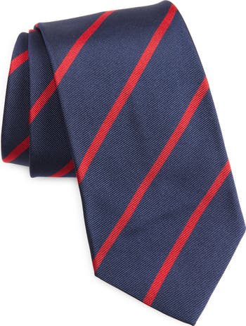 Angled stripes bring smart, classic detailing to a tie crafted from Italian silk and styled to elevate any formal or semiformal look.