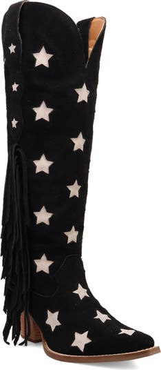 You already know you're a star, this knee-high boot just boosts your natural shine with its stacked heel and playful fringe trim.