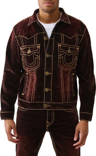 Signature True Religion style oozes from this velvety denim jacket from the contrast top sititching to the horseshoe flap pockets.
