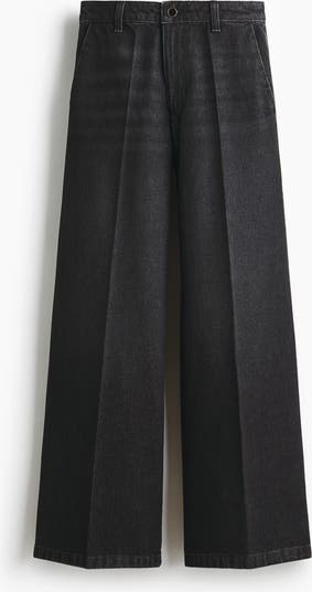 Jeans in rigid cotton denim that feels firm at first but then softens and loosens with wear. Wide leg with a loose fit from the waist to the hip and an extra-wide cut from the thigh to the hem. High waist with a zip fly and button. Diagonal side pockets, patch back pockets and creases down the front and back. Regular length, designed to hit the top of the foot with little or no stacking. Inspired by the 70s, designed for today.