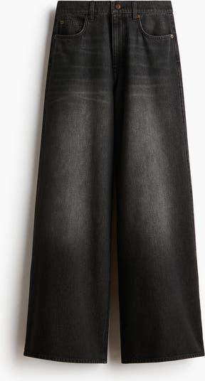 5-pocket jeans in rigid cotton denim that feels firm at first but then softens and loosens with wear. Wide leg with a regular fit from the waist to the hip and an extra-wide cut from the thigh to the hem. High waist with a zip fly and button. Regular length, designed to hit the top of the foot with little or no stacking.