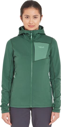 Rab's Superflux Full-Zip Hooded Jacket is a do-it-all midlayer for intense climbs, moderate hikes, and laid-back coffee shop outings alike. The secret is Rab's unique thermic fleece, a moisture-wicking material that combats sweat on active excursions and insulates during downtime. The updated silhouette and look make this jacket ideal for adventure and après.