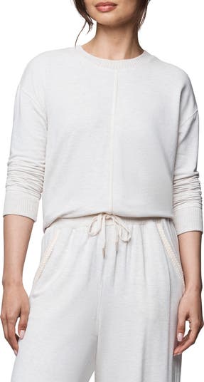 Supersoft ribbed trim gives lived-in comfort to this stretchy sweatshirt that's perfect for lounging around or running errands.