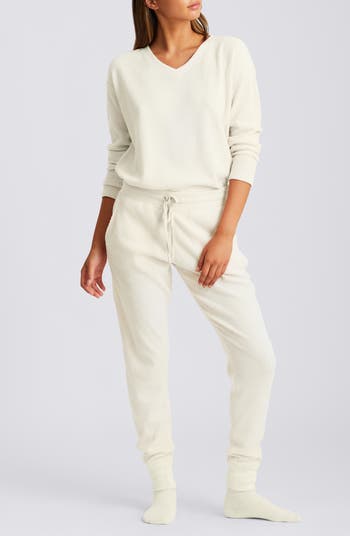 Keep the vibes cozy as you lounge around in these supersoft waffle pajamas featuring a relaxed-fit top and matching sweatpants.