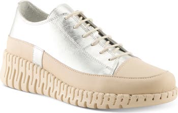 Stretchy laces allow for easy-on/off in this buttery-soft leather sneaker set on a chunky, statement sole and outfitted with a removable insole for customized comfort.
