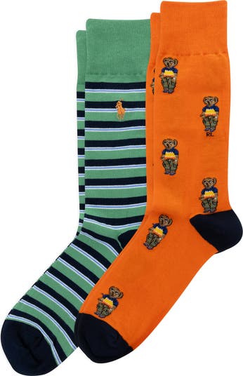 Polo bears and crisp stripes bring bold options to a two-pack of socks made for comfort from a soft, breathable cotton blend.
