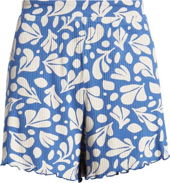 Soft ribbed-knit shorts covered in a tropical-inspired print are perfect for the beach or just lounging around at home.