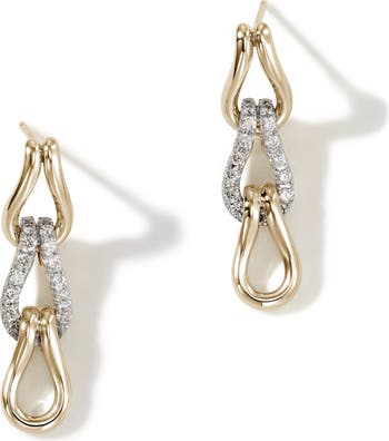 Undulate links of 14-karat gold are illuminated by pavé diamonds in these handcrafted drop earrings.