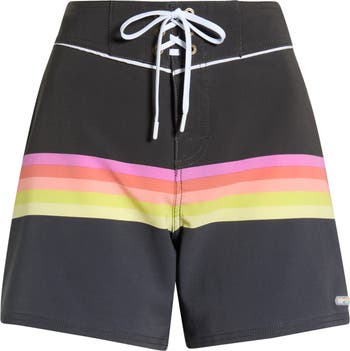 You will love chasing waves in these board shorts made from a water-repellent coating and colorblocked stripes.