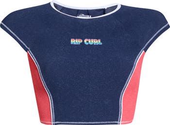 Raglan sleeves ensure you'll be moving easily on the beach and in the water when you wear this cropped rashguard that's softly textured.