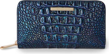 Gleaming logo hardware and croc-embossed leather distinguish a slender wallet perfect for securing your cards, cash and coins.