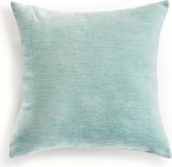 The indoor pillow that lives beautifully outdoors. Enjoy the upscale luxury and durability of Jacquard. With a woven seafoam pattern, it plays well with any palette. This pillow is weather resistant and responsibly made. Filled with 100% recycled fibers.