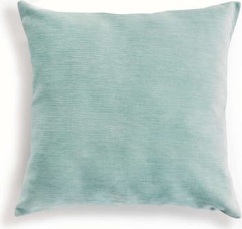 The indoor pillow that lives beautifully outdoors. Enjoy the upscale luxury and durability of Jacquard. With a woven seafoam pattern, it plays well with any palette. This pillow is weather resistant and responsibly made. Filled with 100% recycled fibers.
