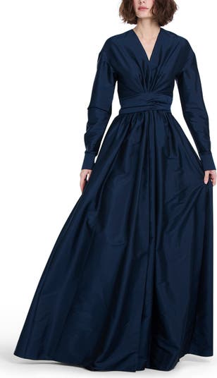 Surplice Long Sleeve Taffeta Gown