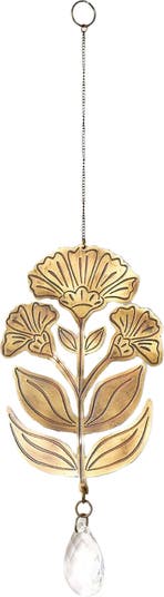 Enhance your space with the Surya Floral Engraved Brass Suncatcher. Featuring a beautifully embossed flower design, this stunning piece captures sunlight with its radiant brass finish. A sparkling teardrop crystal reflects light, casting enchanting rainbows throughout your room or garden. This suncatcher brings a touch of natural beauty and joy to any area of your home.