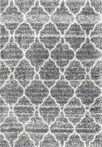 Mingled shades of gray and give our Susa shag rug a vintage look. The ogee trellis pattern, reminiscent of Moroccan tile designs, is softened by the striated yarns of the background. The soft shag pile is just long enough to sink into - perfect for a living room, bedroom, or den.