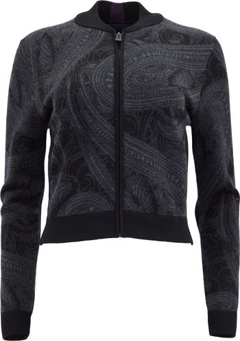 Susan Merino Wool Zip-up Jacquard Cardigan Sweater