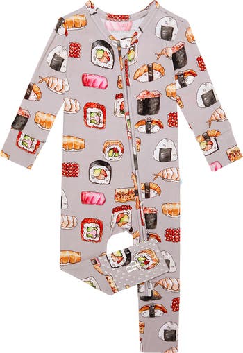 An adorable sushi print brings scrumptious charm to this zip footie made from buttery-soft fabric and finished with grips on the feet for steady standing and stepping.