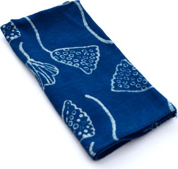 Inspired by the gentle beauty of bell flowers, our Lana Napkins bring a touch of nature to your table. Each napkin is hand block printed using carved wooden blocks on soft, organic cotton, then naturally dyed in soothing shades of indigo. Perfect for everyday meals or special gatherings, these eco-friendly napkins add an artisanal charm to any setting. Pair them with our indigo tablecloths for a beautifully cohesive, nature-inspired table. • block printed by hand using a wooden carved block • hand dyed in Natural Dyes • color - indigo, white • fabric - organic cotton • size - 19" x 19" • set of 4 *Please note that slight color variations may occur, as each piece absorbs natural dyes differently—a beautiful part of the handmade process. --------------------------------------- ABOUT BLOCK PRINTING Block Printing is an ancient printing technique especially with the use of vegetable dyes. After the wooden block is carved with the pattern, the fabric is then prepared with multiple washes to make the fiber ready to take the dye. With the process of multiple printings and washing before the final product is placed in a dye bath of flowers and barks, the fabric goes through the hands of the block printer and dyer with utmost care. That same care is passed onto the consumer who wishes to take part in this process of honoring the craft and the earth that gives us so much.