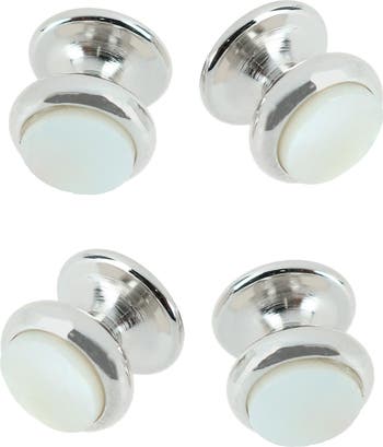 Luminous mother-of-pearl insets elevate this wardrobe-staple set of four shirt studs.
