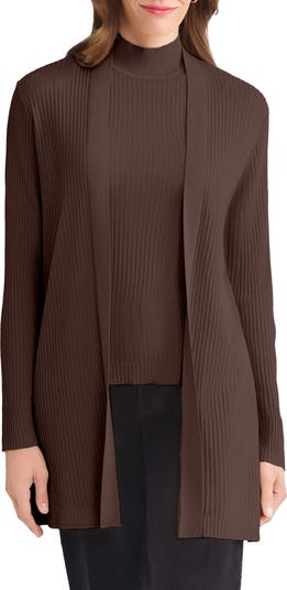Dropped shoulders enhance the relaxed fit of this softly ribbed cardi made with a layer-perfect open front.