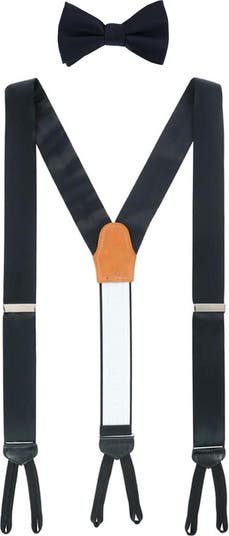- Set includes braces and bow tie