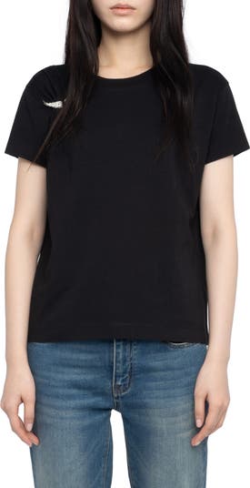 Suza Rhinestone Wing Pin Cotton T-Shirt