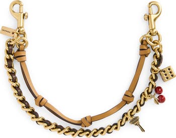 Leather, metal and swag come together in this swingy charm that brings an extraspecial touch to your favorite bag.