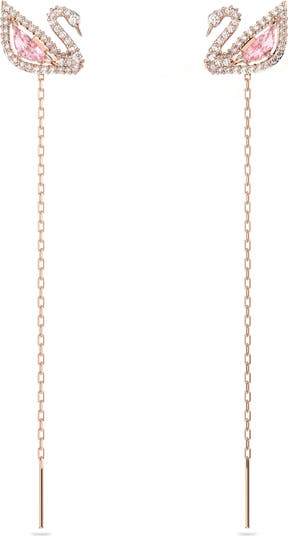 Signature swans sparkle in signature crystals and can be worn as studs or attached to lengthy chains to create dramatically long drop earrings.