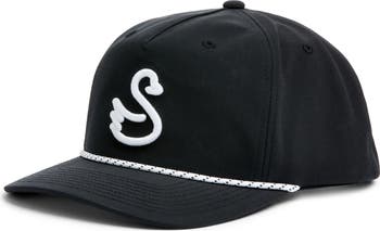 A contrast cord wraps around the crown of this solid baseball cap with a boldly embroidered swan logo on the front.