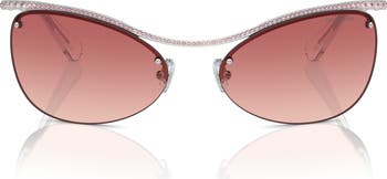 Brilliant crystals line the frames and temples of these statement-making sunglasses designed with angular frames and adjustable nonslip nose pads.